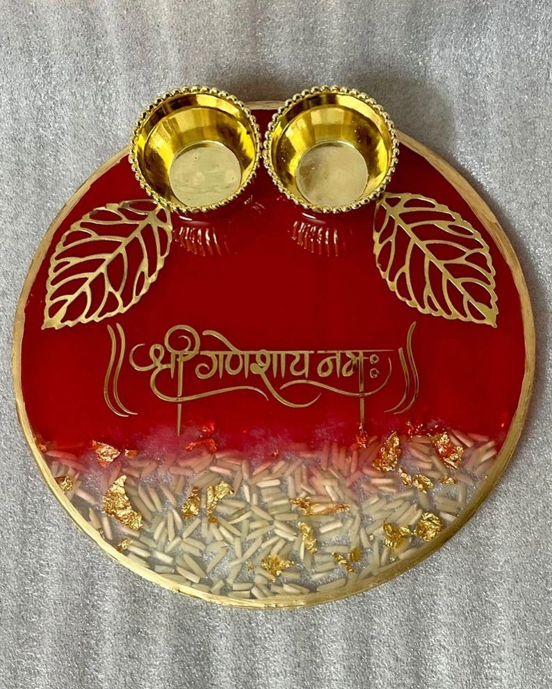 Kanku – Chawal,Sweet 10 Inch Resin Puja Thali for Wedding,Resin Aarti Thali,Resin Tilak Platter,Best for Return Gift,Wedding Thali,Resin Art