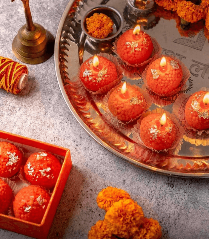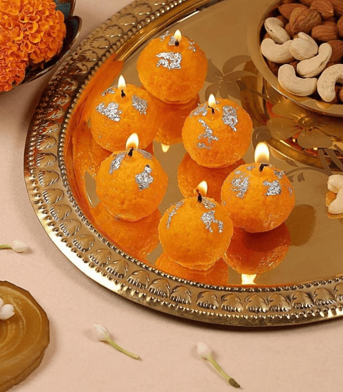 Ladoo Candle Set of 6 – For Pooja Diwali Navaratri Home Decor Diwali Decoration | Indian Sweet | Festive| Handmade Eco-Friendly |Diwali Diya