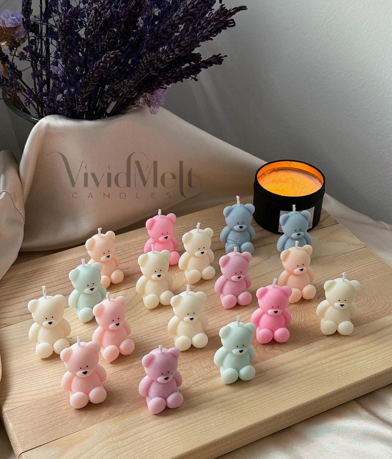 Bear Candle | Mini Teddy Bear | Party Favors | Cute Handmade Candle | Baptism Favors | Baby Shower Favor | Unscented Candle | Wedding Favors