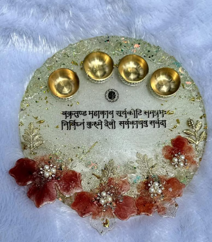 Resin 10″ Handmade Pooja Thali/Platter/Roli chawal/Raksha Bandhan/Rakhi/Christmas Gift